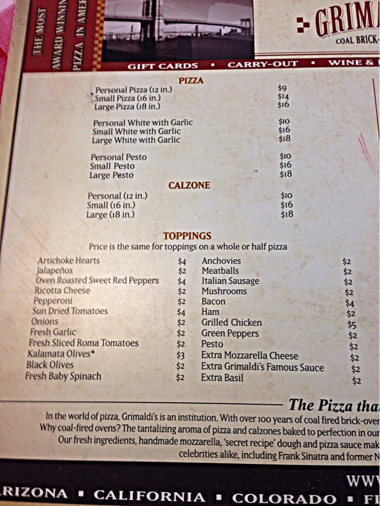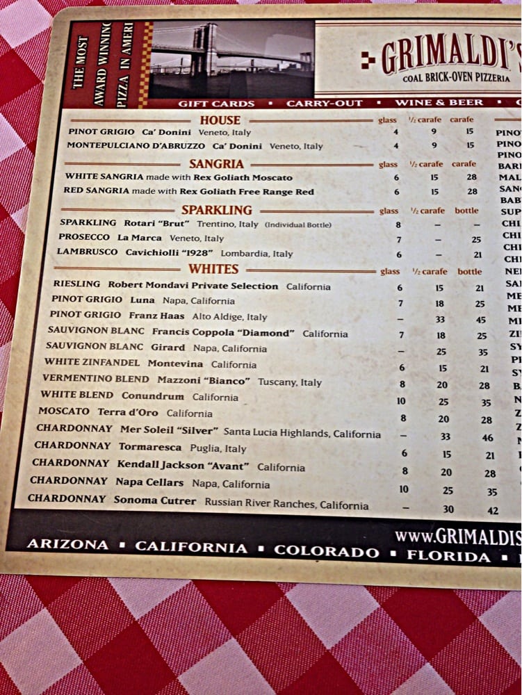 Grimaldi's Pizzeria Menu